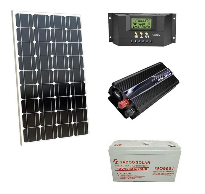Kit fotovoltaico 1 KW giornaliero inverter 2000W Panello solare 100W + batteria